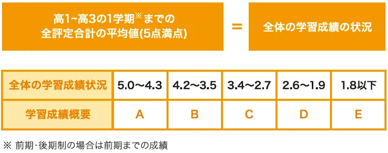 国公立大学の学校推薦型選抜は、全大学の90%以上で実施されていますが、募集人数は各大学ともそこまで多くありません。そして出願のための非常に高いハードルとなるのが高校での成績です。 多くの国公立大学では、出願条件として「学習成績概評がA段階以上であること」などを求めています。「学習成績概評」とは、高校3年間の全科目の評定平均(学習成績の状況)をA〜Eの5段階で評価したものです。A段階に該当するのは「評定平均値5.0〜4.3」の非常に優秀な成績層のみです。