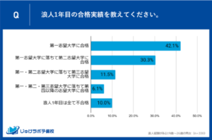 上の図を見ると浪人1年目の第一志望大学合格実績は42.1%となっています。