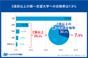 そして下の図からは浪人2浪目以上の第一志望大学合格実績は7.9%ということがわかります。