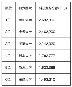岡山大学は、旧六医大における科研費配分額がなんと第一位!