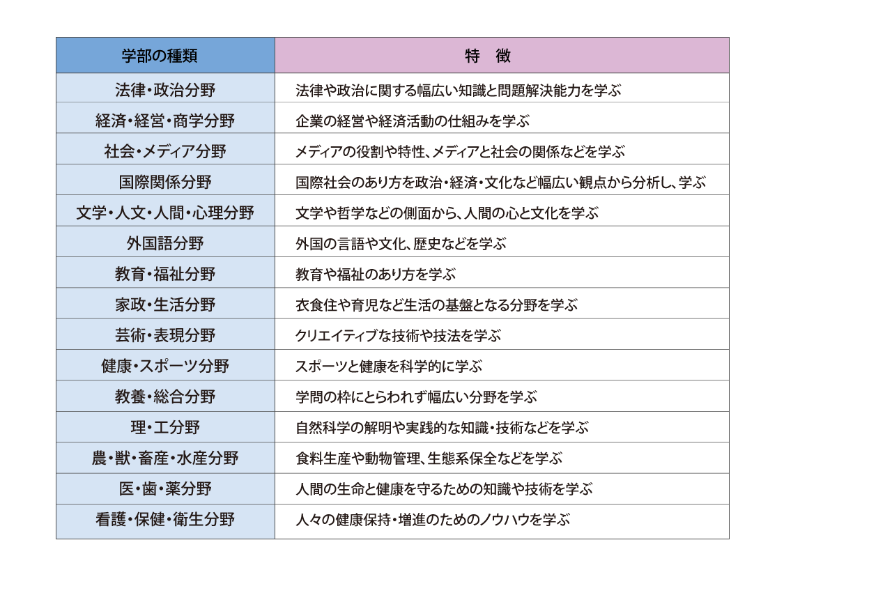 さらに細かい学部の分類を知っておくと大学選びに役立ちます。
