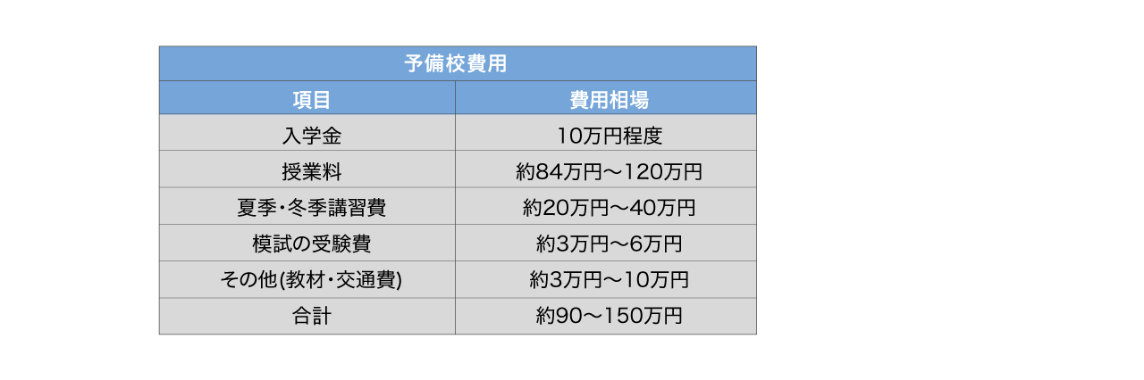 大手予備校の場合、授業料は約70万~80万円、講習費用が20万~40万円、模試の受験費用が数万円程度かかります。