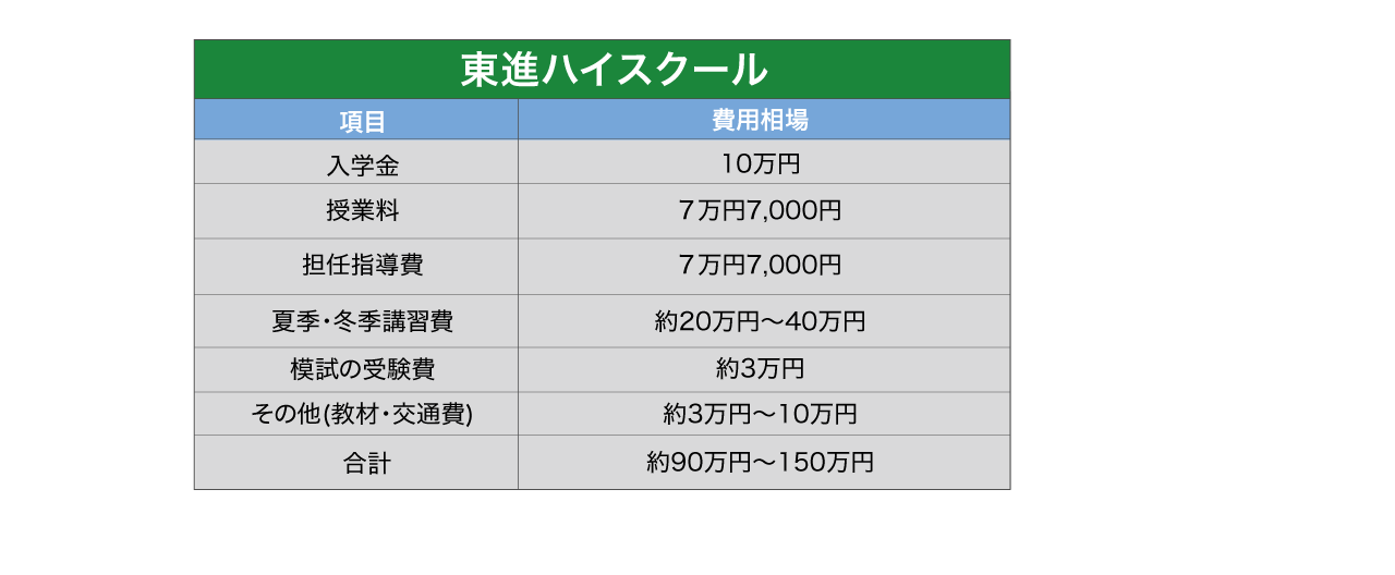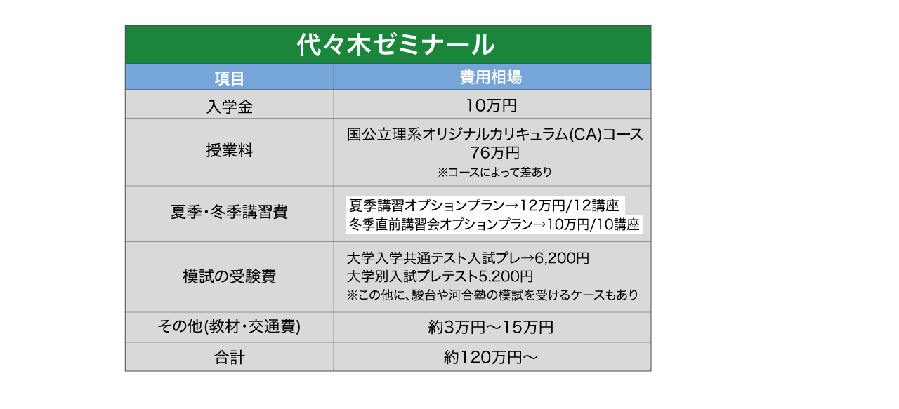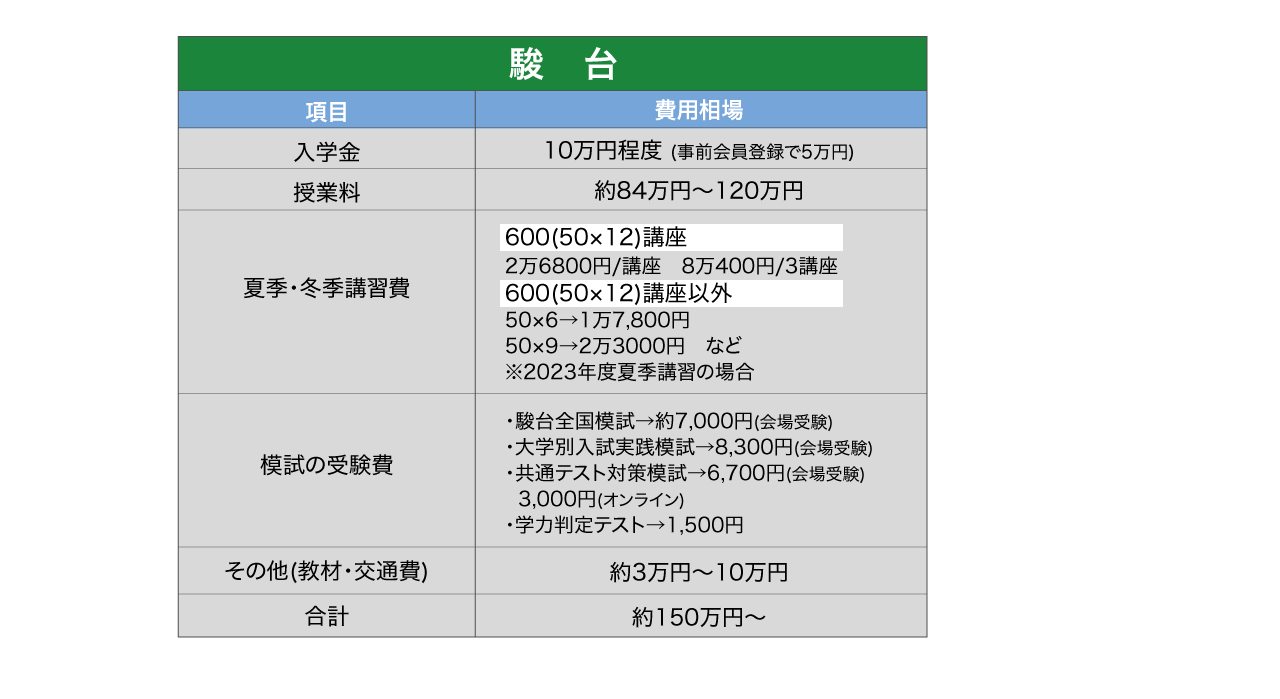 この費用には、授業料をはじめ、模試の受験料や夏期・冬期講習の費用が含まれます。