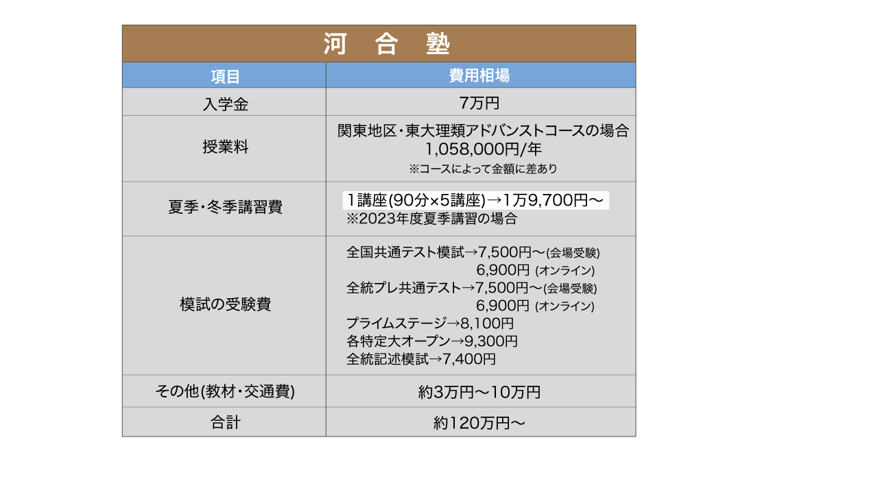 参考:学費・入塾手続き方法 | 大学受験科 | 大学受験の予備校・塾 河合塾