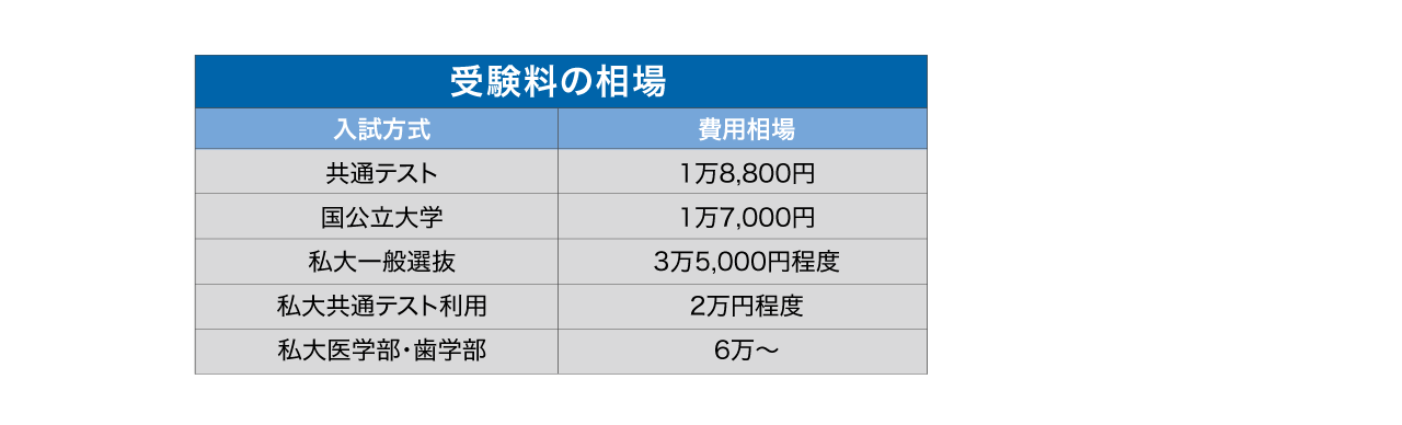 私立大学を数校に加えて国公立大学も受験する場合、受験料だけで合計10万円以上かかることもあります。