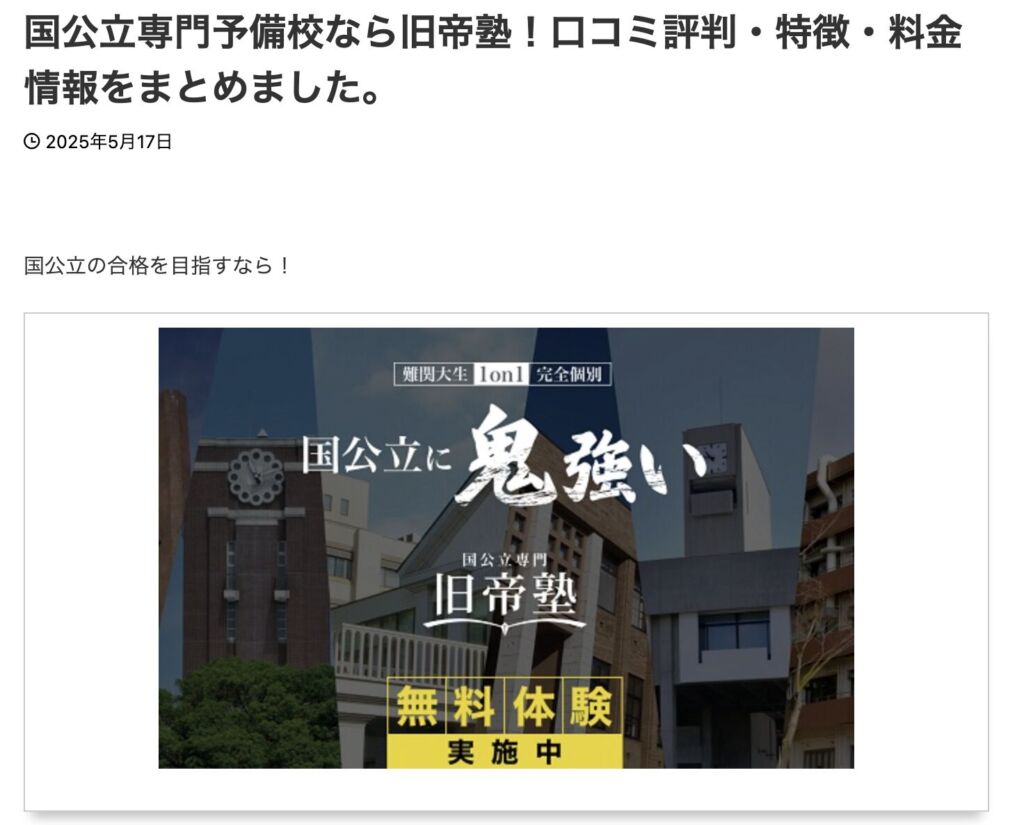 塾オンラインドットコムに「旧帝塾」が掲載されました!