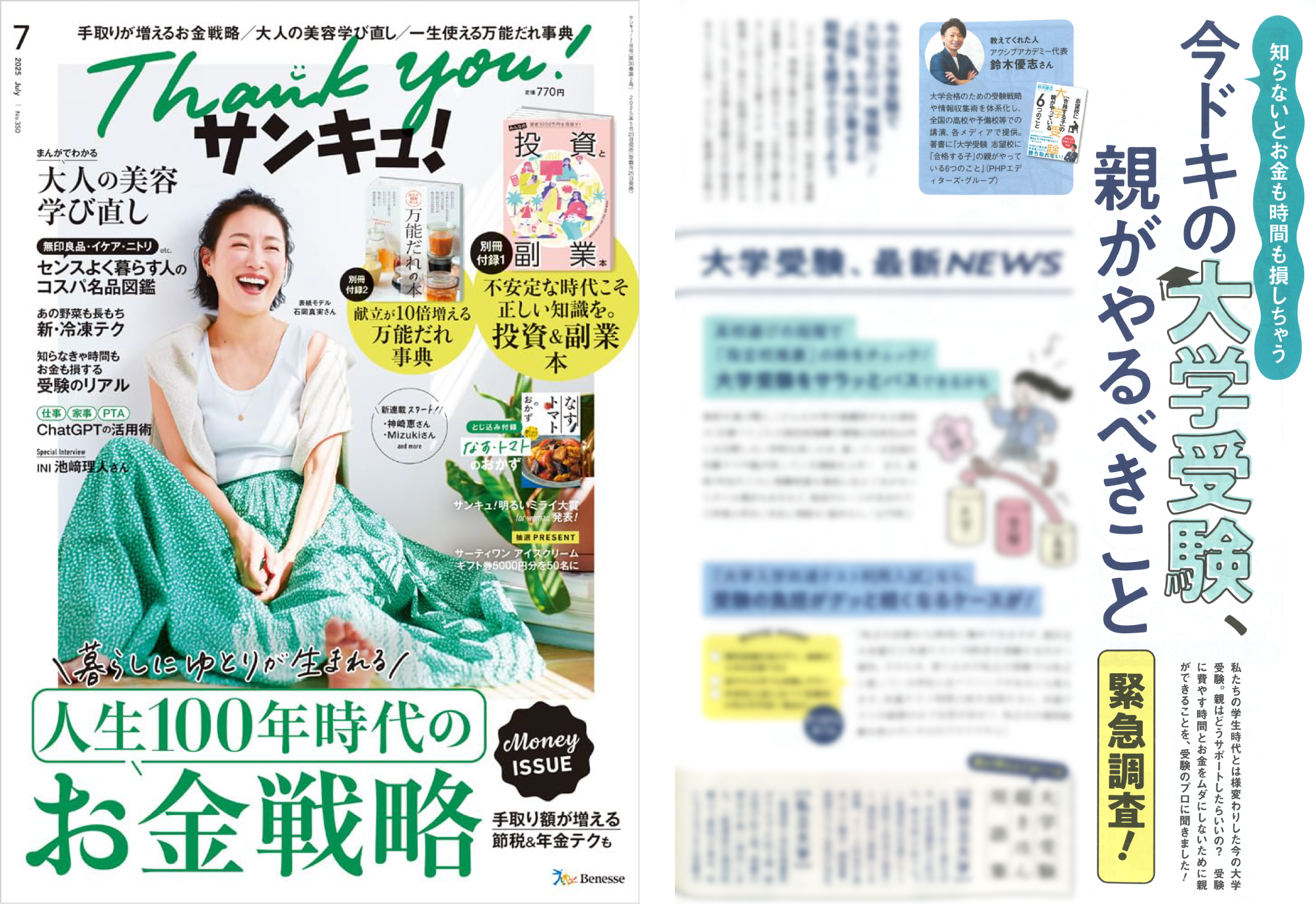 アクシブアカデミー代表の鈴木優志が監修した、受験特集が掲載されている サンキュ! 2025年7月号 が発売されました。