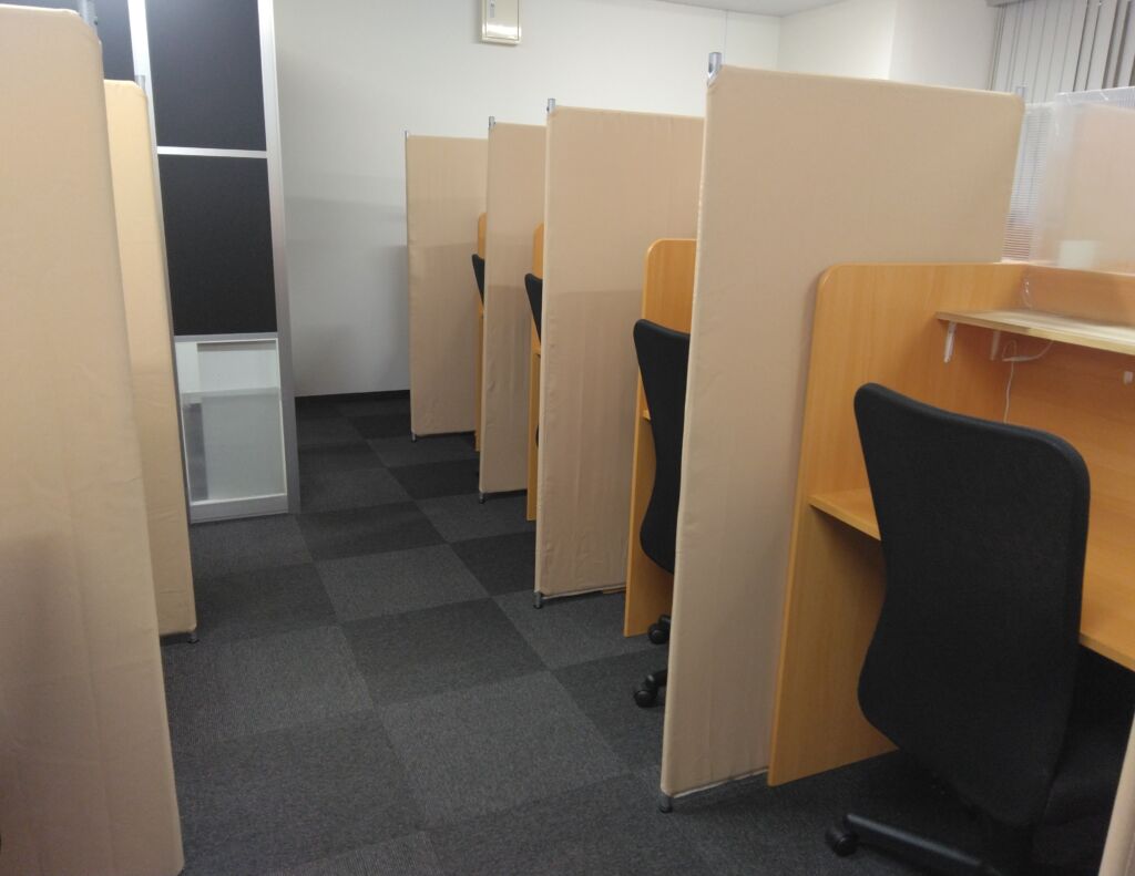 2025.11.18 2025.11.18 施設案内施設案内北越谷校の施設案内②自習室1 静かで落ち着いた自習室です。席ごとにパーテーションで仕切られています。ほぼ毎日、9時から利用できます(アプリが必要)。