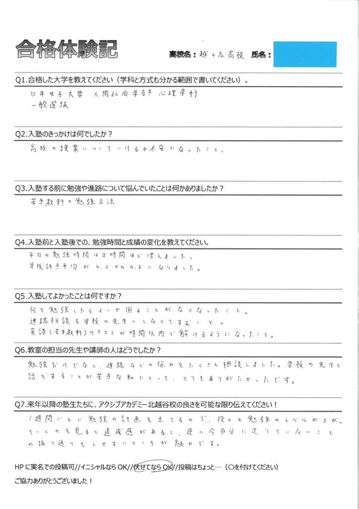 Q7.来年以降の塾生たちに、アクシブアカデミー北越谷校の良さを可能な限り伝えてください!