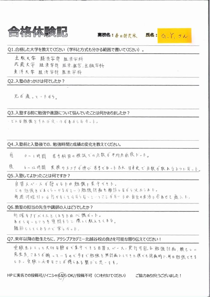Gさんは高校2年生の3月から、この塾に通ってくれました。