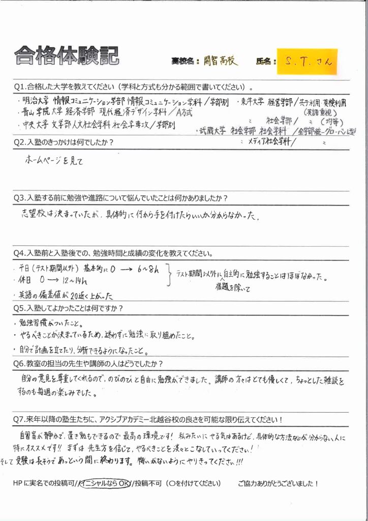 Q7.来年以降の塾生たちに、アクシブアカデミー北越谷校の良さを可能な限り伝えてください!