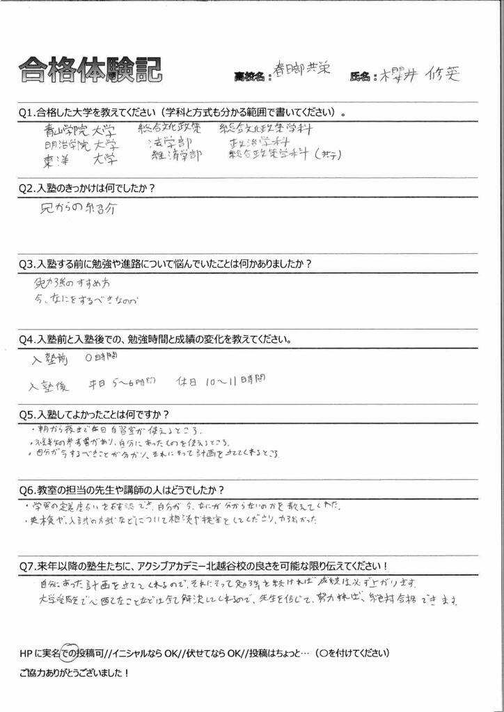 Q7.来年以降の塾生たちに、アクシブアカデミー北越谷校の良さを可能な限り伝えてください!