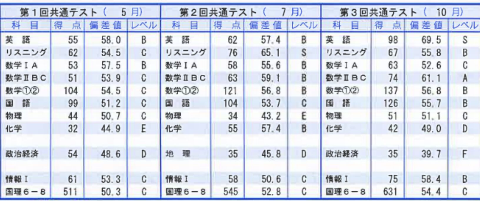 また、戦略授業の中で目標点数を決めたり、友人と共通テスト英語リーディングの点数を競い合う事で、よりモチベーションが高まったと思います。これらの成果から、夏終わりの10月の模試では模試の英語のリーディングで98点を取ることができました。