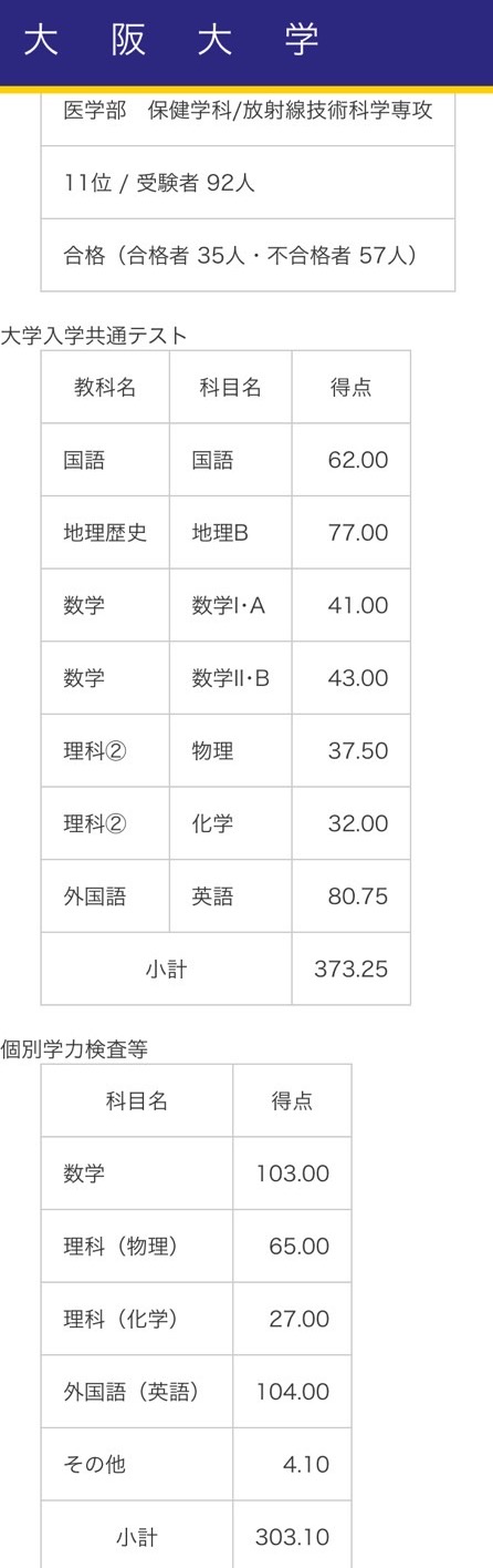 帰国後は二次試験対策を進めましたが、模試で不安定なところがあったり最後まで不安な科目ではありました。ただ、大阪大学の二次試験では60%以上の正答率があり、理科を牽引してくれた科目に成長しました。
