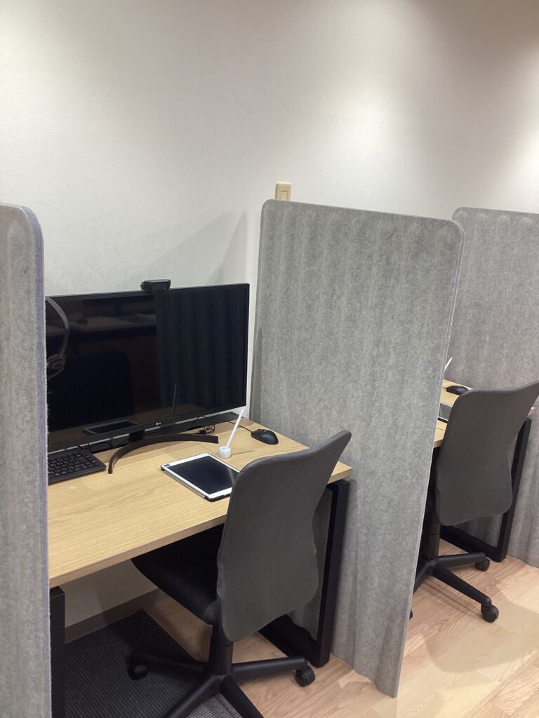 2022.07.16 2025.11.28 施設案内施設案内②個別授業ブース 個別授業用ブースです。難関大トレーナーと個別授業を実施します。超難問の過去問、スピーキング、小論文対策など、様々な受験対策が可能です。PC画面で表情の認識や画面共有、iPadでノートの共有により、横でリアルタイムに授業を受けるのと同じサービスを受けることができます。